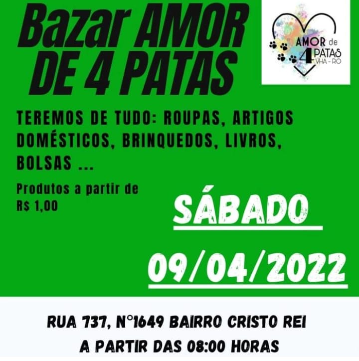 BAZAR SOLIDÁRIO AMOR DE 4 PATAS 11/09 (participe)