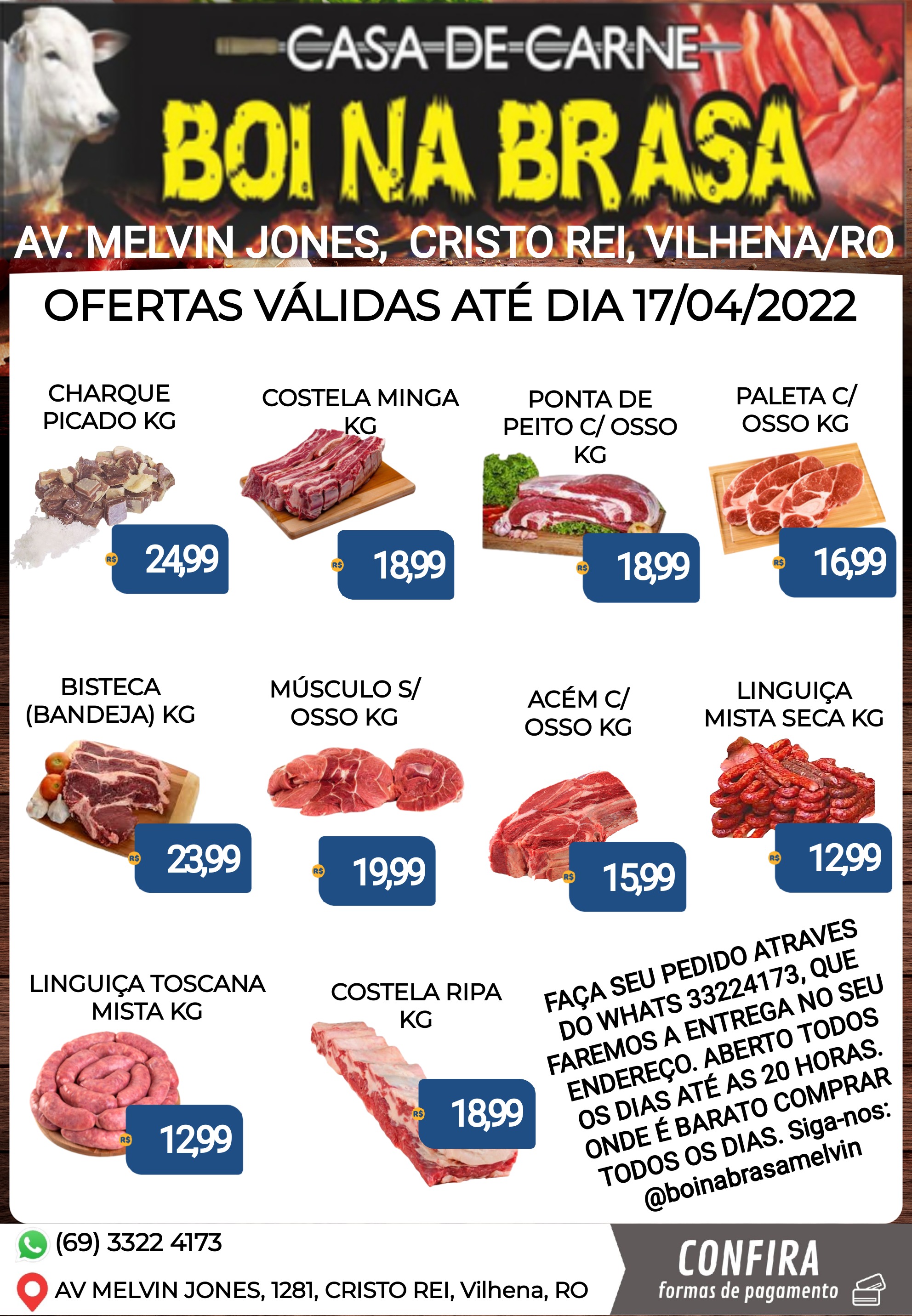 OFERTAS BOI NA BRASA DA AV. MELVIN JONES – CRISTO REI – em frente a Creche Municipal – ONDE É BARATO COMPRAR TODOS OS DIAS!