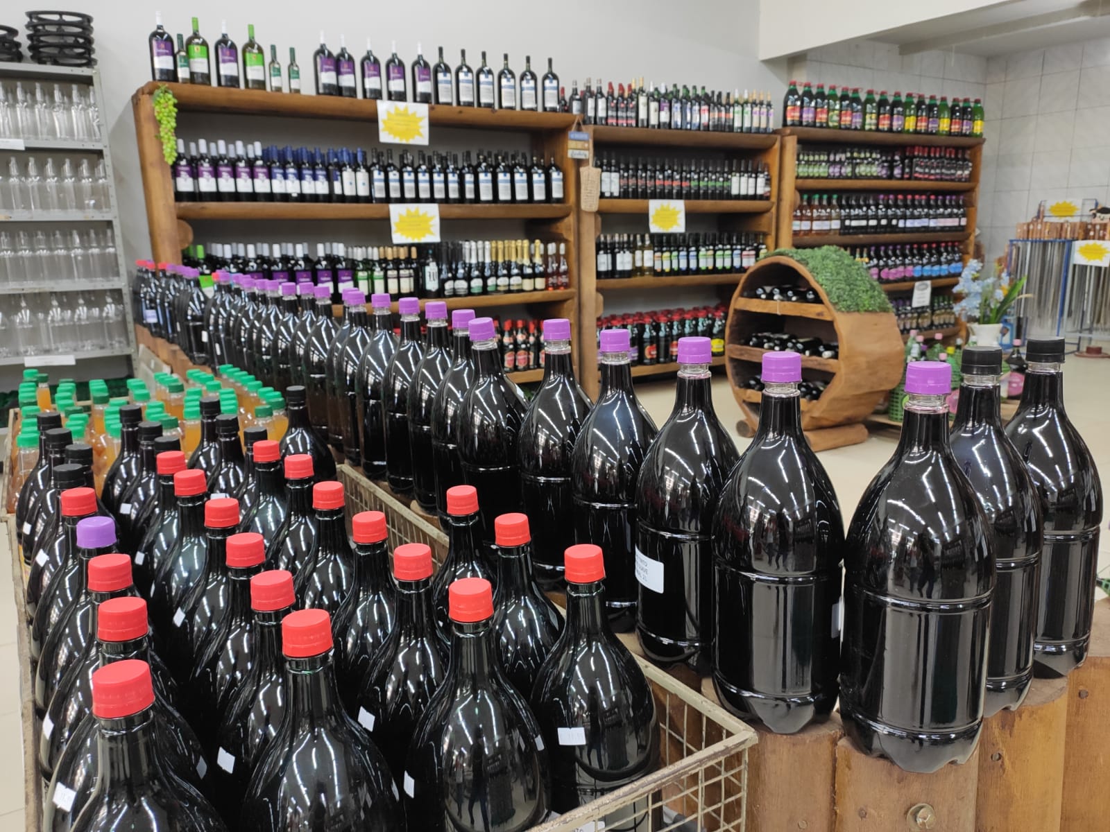 Maçãs, uvas, caqui, peras, pitaya, pinhão e ainda salame colonial, massa caseira, queijos, morcelas, doces, chimias, suspiros, vinhos, sucos de uva, cachaça de alambique e claro, a melhor erva-mate para chimarrão e tereré - a Erva Mate Biazzi, sempre nova para saborear o melhor chimarrão.
