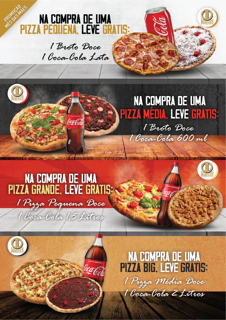 -Compre 01 pizza grande e ganhe 01 pizza pequena doce + 1 Coca-Cola 1,5 litros