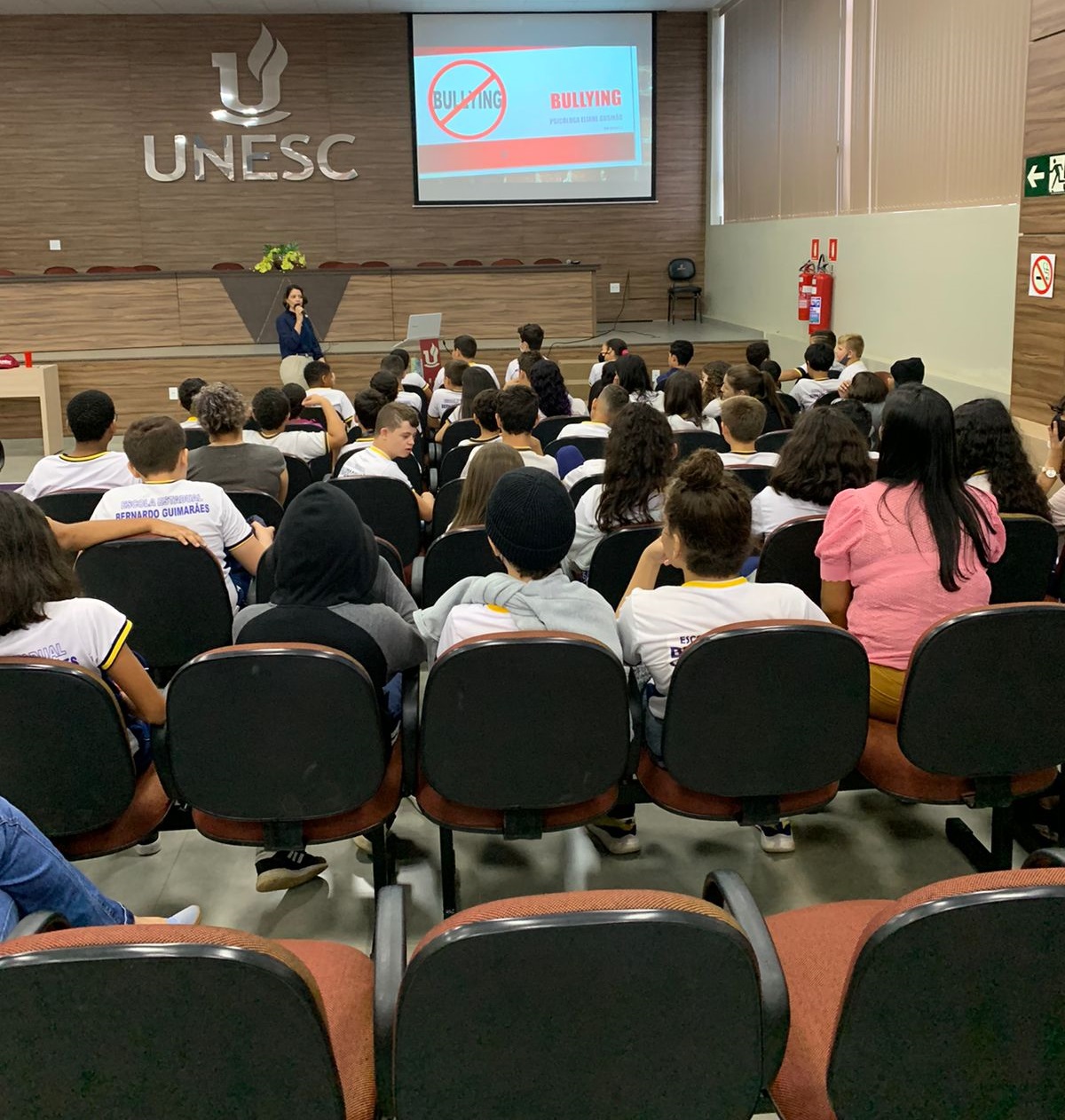 A UNESC Cacoal está sempre à disposição para oferecer serviços que beneficiam a sociedade. No último dia 12 de maio, a Instituição abriu as portas do auditório para receber alunos da Escola Estadual Bernardo Guimarães para um importante debate, a prática do Bullying nas escolas.