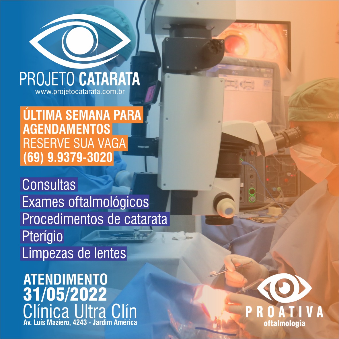 "Última semana" para Agendamentos no PROJETO CATARATA VILHENA/RO (Fone: 9.9379–3020)