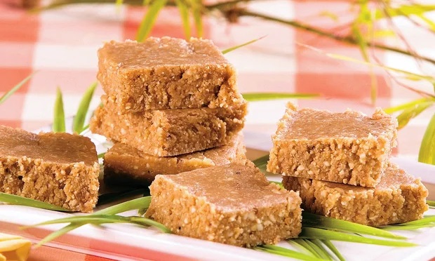 - Retire da geladeira e corte a paçoca em quadradinhos.