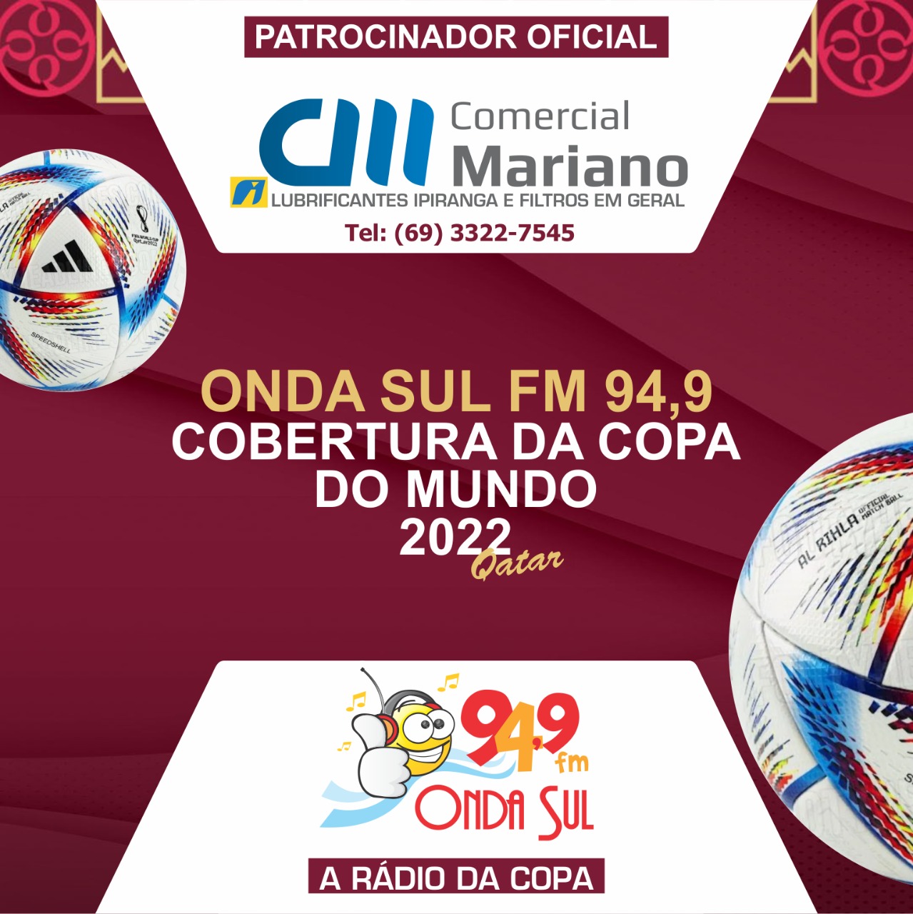 Patrocinador Oficial da Cobertura da Copa do Mundo 2022 no Qatar (RÁDIO ONDA SUL FM 94,9 – A RÁDIO DA COPA)
