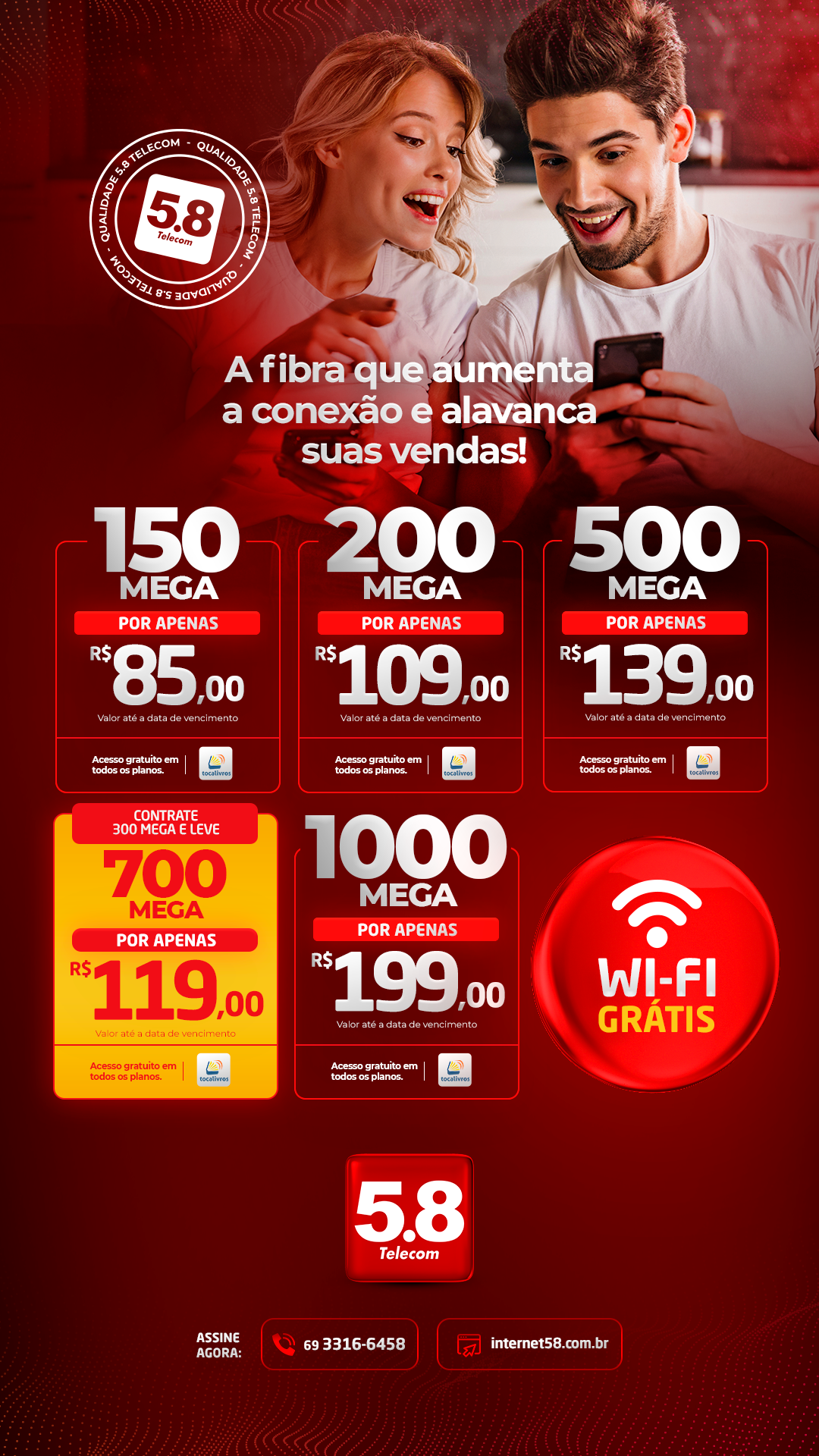INTERNET 5.8 TELECOM tem planos de até 1.000 MEGA (Ligue agora: 3316–6458)