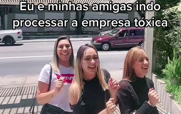 "Eu e minhas amigas indo processar a empresa tóxica", escreveu a funcionária na legenda da publicação, feita no dia da audiência em que teve ganho de causa em 1° grau.