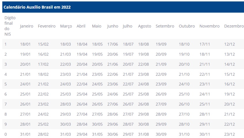 Beneficiários com Número de Inscrição Social (NIS) com final 3 recebem hoje (20) a parcela de julho do Auxílio Brasil. O valor mínimo do benefício é de R$ 400. As datas seguem o modelo do Bolsa Família, que pagava beneficiários nos dez últimos dias úteis do mês.