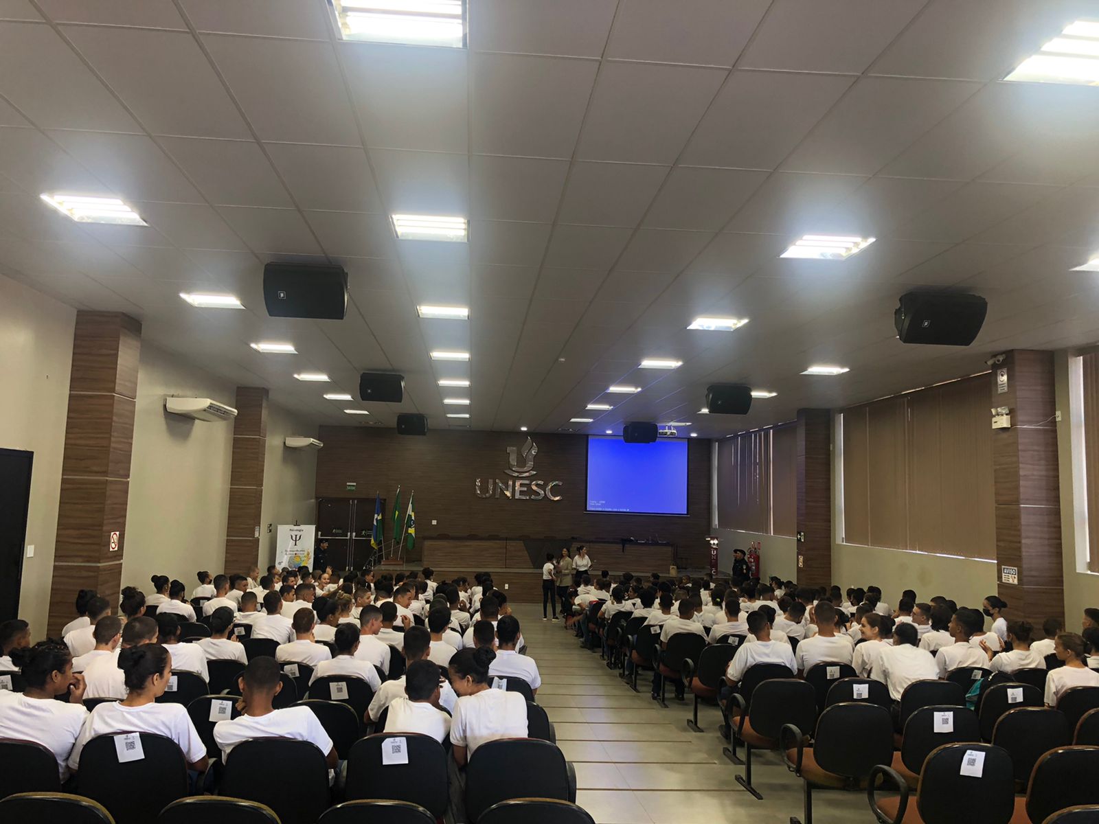 A UNESC Cacoal recebeu, na última quarta-feira, mais de 400 acadêmicos do Colégio Tiradentes da Polícia Militar de Rondônia. Durante a visita, os alunos tiveram a oportunidade de conhecer toda a estrutura da Faculdade, conversar com os coordenadores e professores dos cursos, além de tirar dúvidas com eles.