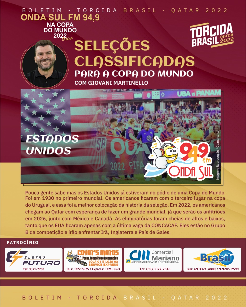 A Cobertura da Onda Sul Fm 94,9 na "Copa do Mundo Qatar 2022" é um Patrocínio Especial: