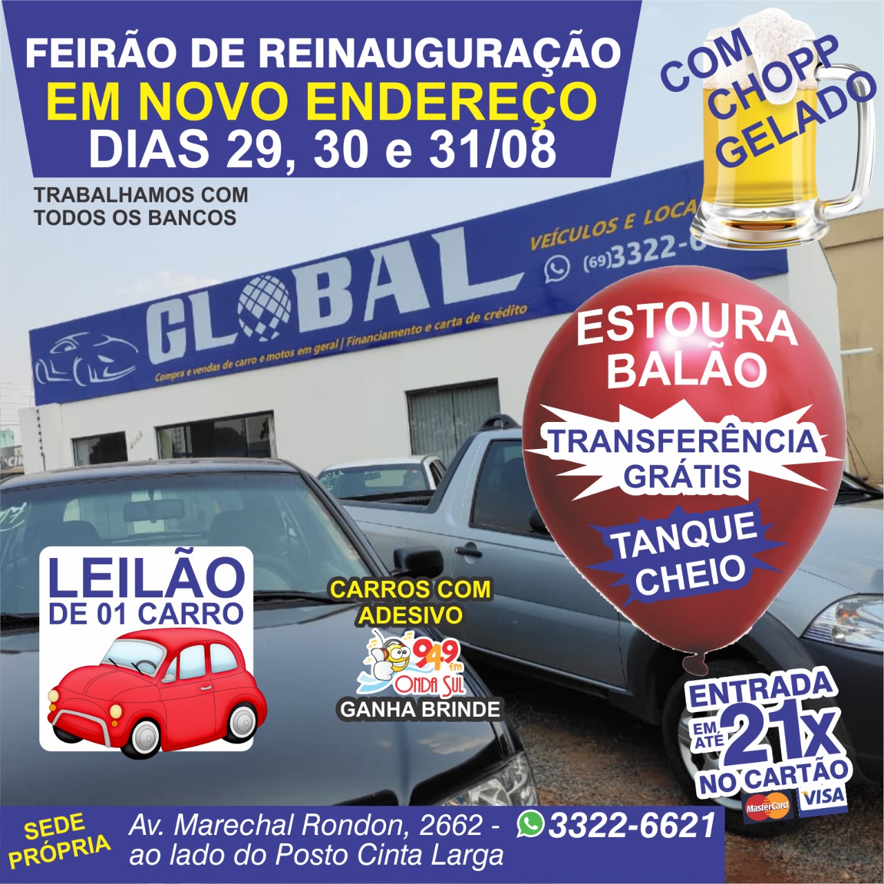 Venha para Grande FEIRÃO DE REINAUGURAÇÃO da GLOBAL VEÍCULOS!