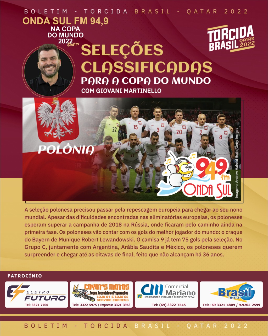 A Cobertura da Onda Sul Fm 94,9 na "Copa do Mundo Qatar 2022" é um Patrocínio Especial: