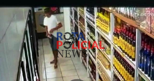 Aproveitando-se da distração do comerciante e funcionários, o ladrão foi ao setor de bebidas e furtou duas cervejas e escondeu no calção, evadindo-se do local na sequência.