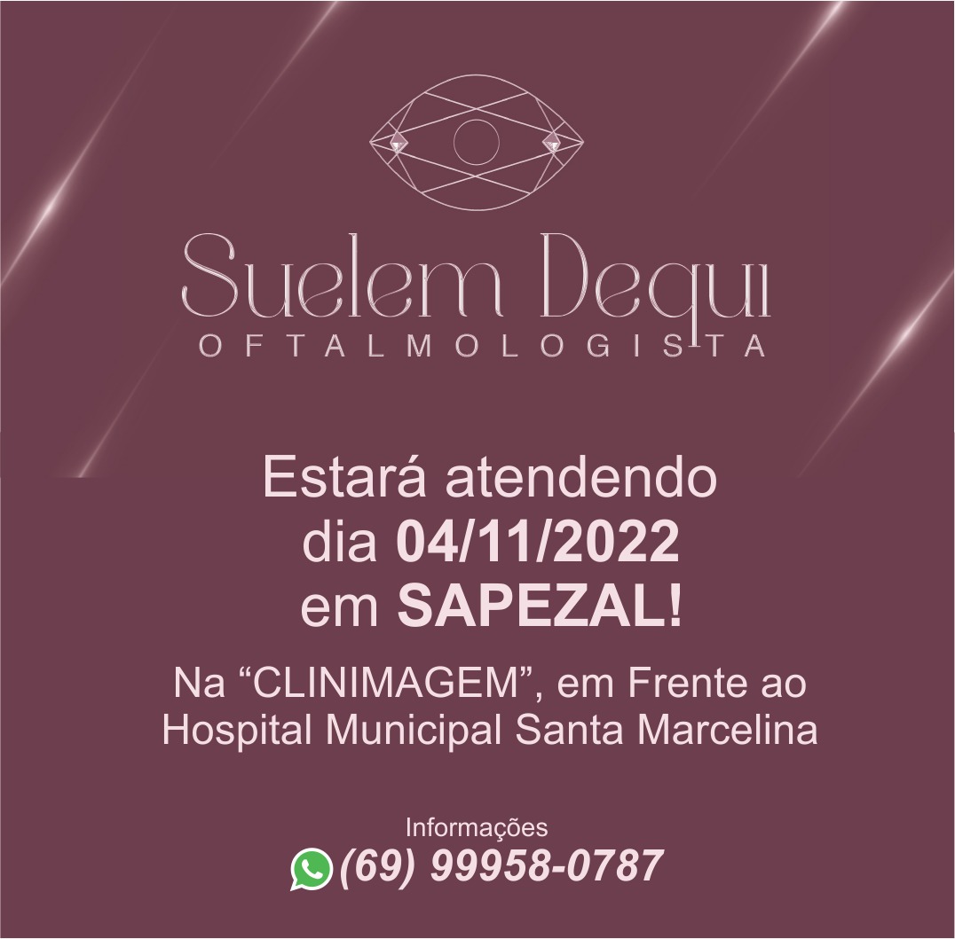 Estará atendendo dia 04 de novembro, SEXTA-FEIRA em SAPEZAL!