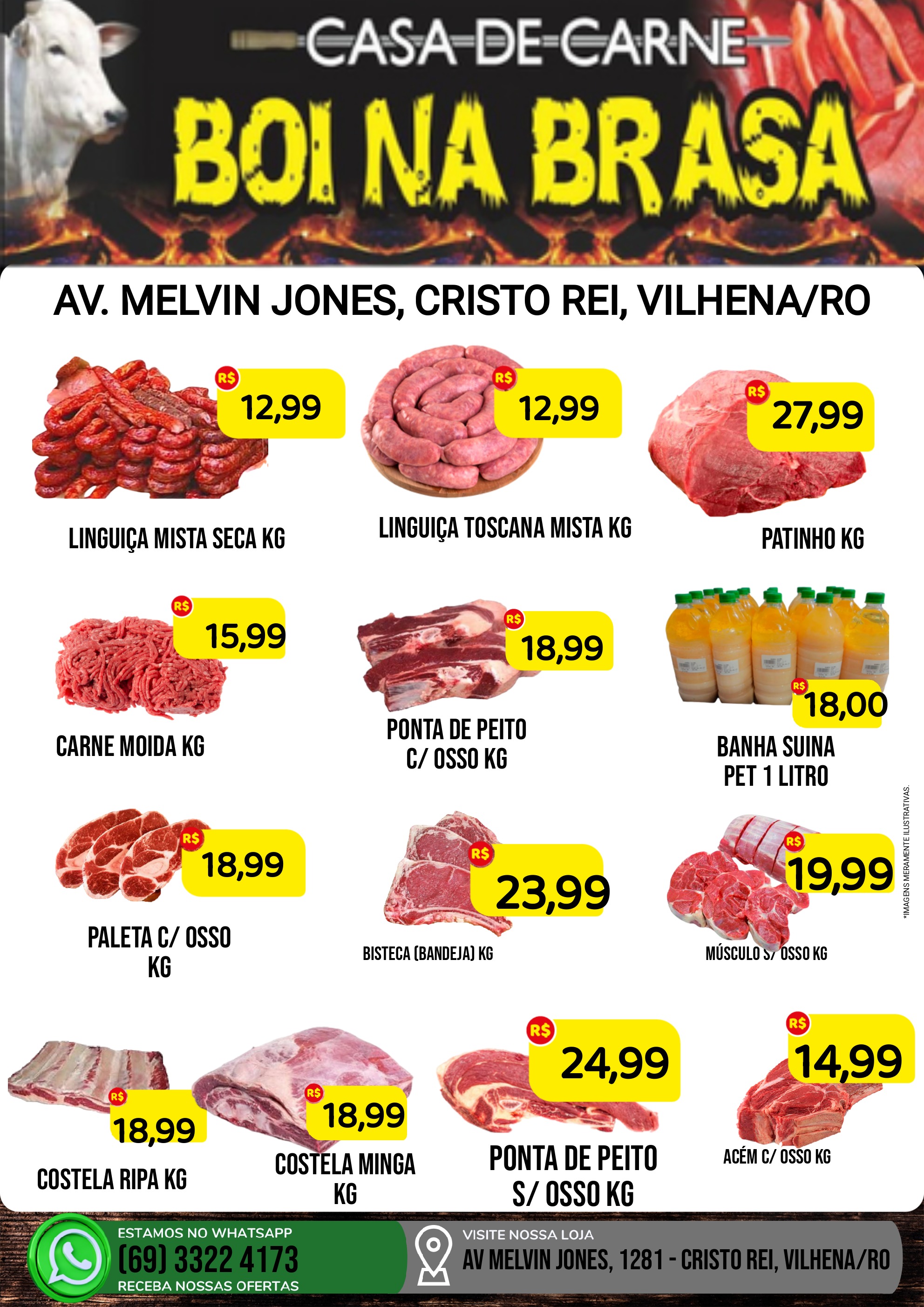 Fim de Semana de Ofertas CASA DE CARNE BOI NA BRASA (Av. Melvin Jones em frente a Creche Municipal)