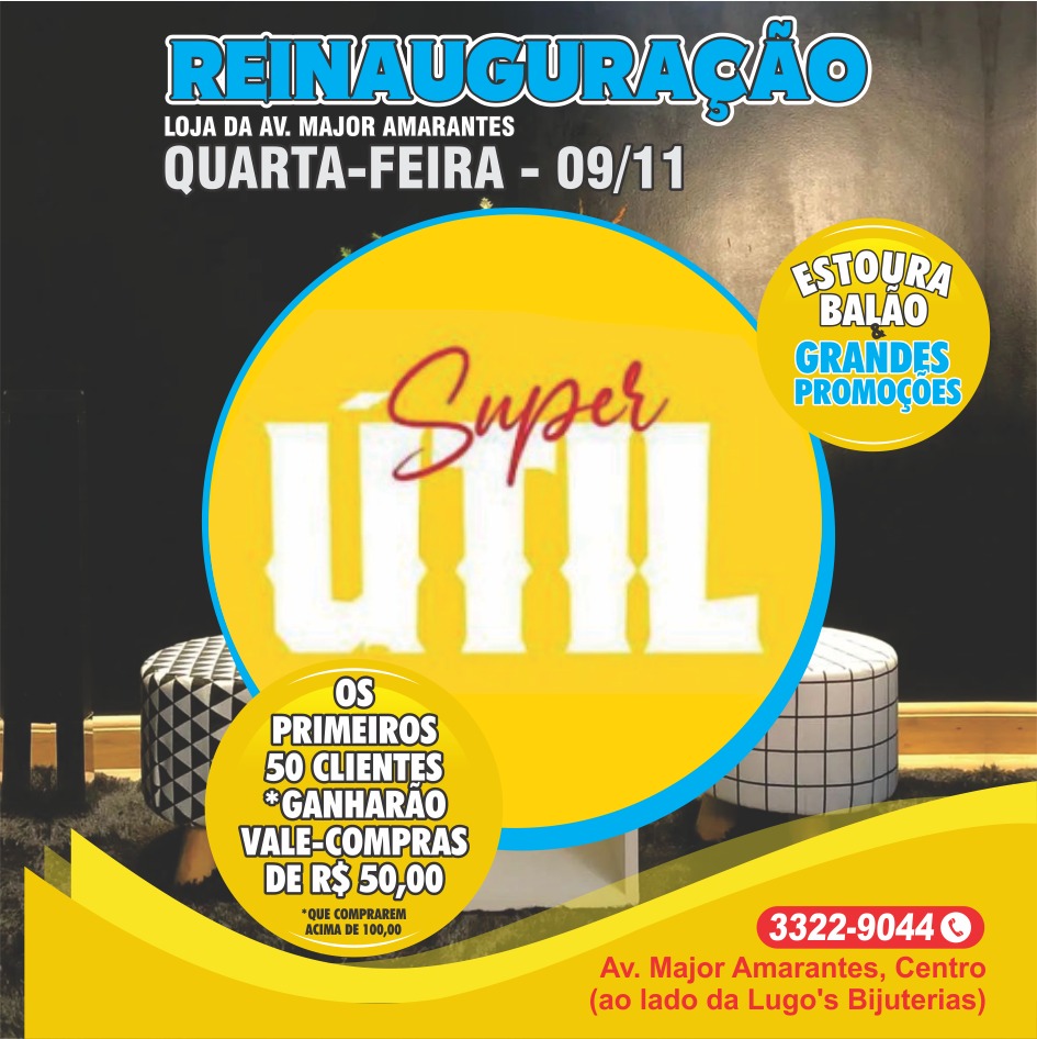 Festa de "REINAUGURAÇÃO" da SUPER ÚTIL UTILIDADES DOMÉSTICAS da Av. Major Amarantes (os primeiros clientes ganharão vale–compras R$ 50,00)