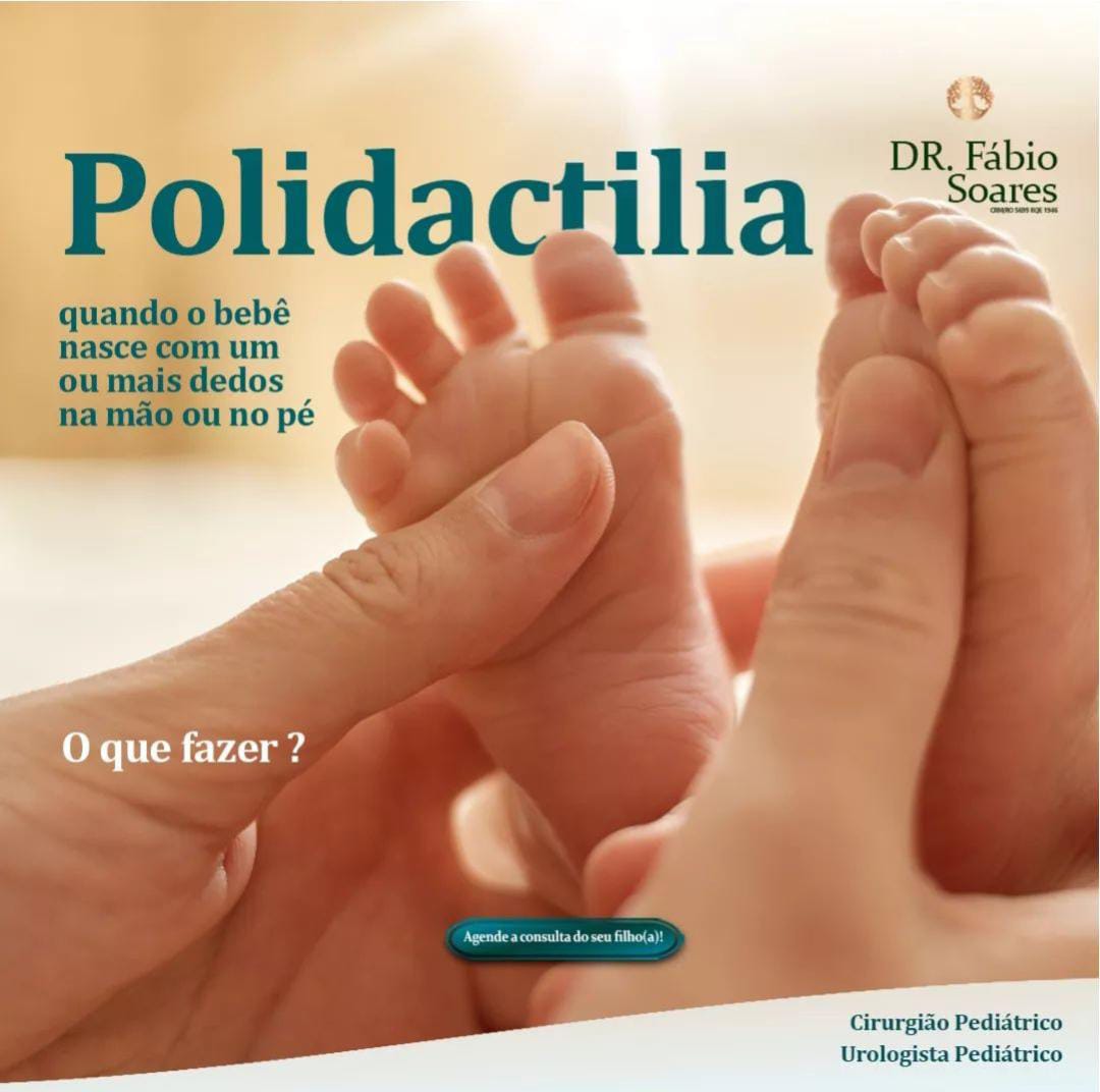 A POLIDACTILIA é uma alteração que acontece quando o bebê nasce com um ou mais dedos na mão ou no pé, normalmente herdado do pai ou da mãe.