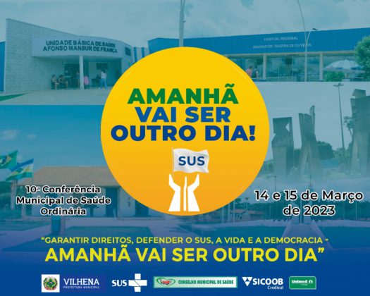 Acontece nos dias 14 e 15 de março, a 10ª Conferência Municipal de Saúde Ordinária, no auditório da Faculdade Favoo (antiga Avec). Organizado pelo Conselho Municipal de Saúde (CMS) em parceria com a Prefeitura de Vilhena, a conferência discutirá a defesa do Sistema Único de Saúde (SUS), que neste ano traz o lema “Garantir Direitos e Defender o SUS, a Vida e a Democracia”.