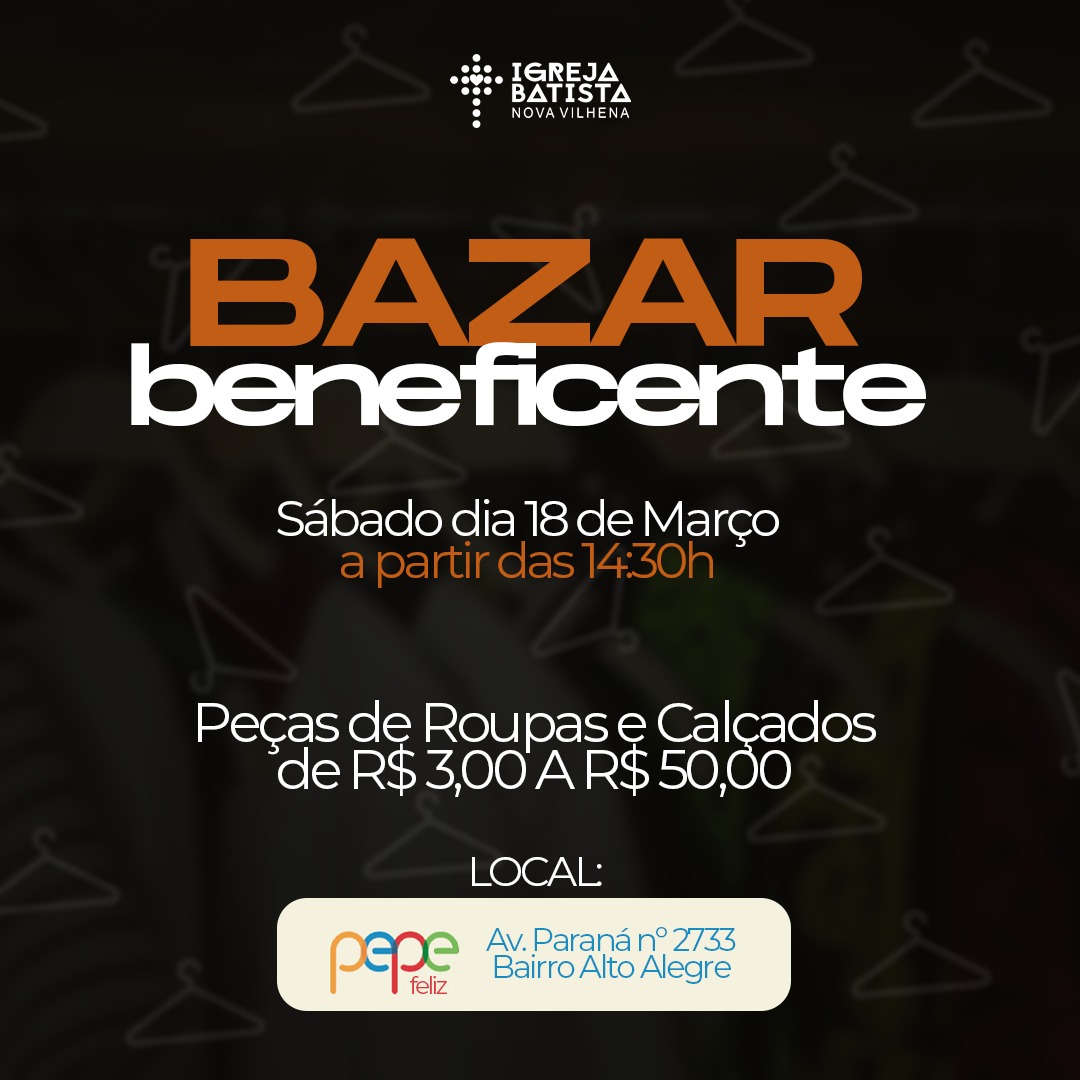 Bazar Beneficente da Igreja Batista Nova Vilhena (18/03) participe !