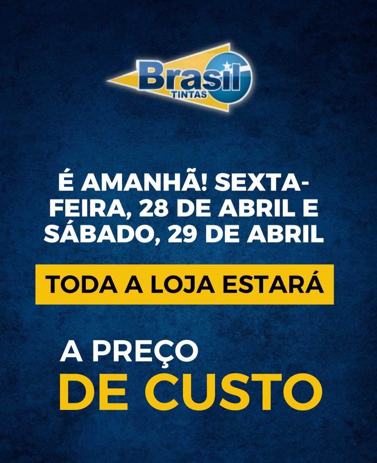 Nesta sexta e sábado tudo a preço de custo no GRANDE FEIRÃO da BRASIL TINTAS ! (não perca)