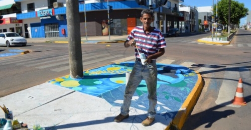 Artista 'colore' ruas de Vilhena com desenhos abstratos e sobre meio ambiente