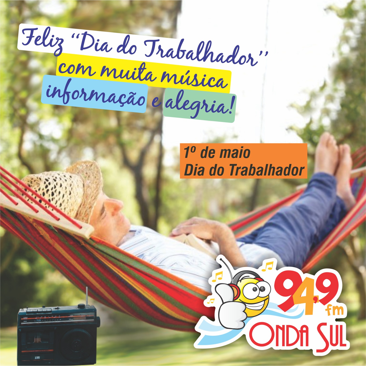 É com muito carinho, respeito e admiração, que a RÁDIO ONDA SUL FM 94,9 deseja a todos os trabalhadores da nossa linda região, um "Feliz DiadoTrabalhador, com muita paz, saúde, alegria, fartura e prosperidade !!!