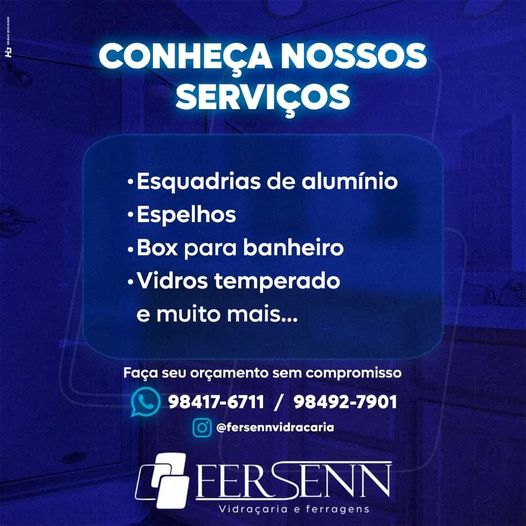 Conheça a ‘’Fersenn Vidraçaria’’, sempre os menores preços e “entrega rápida” dos seus vidros, esquadrias de alumínio, espelhos com moldura e box para banheiros!