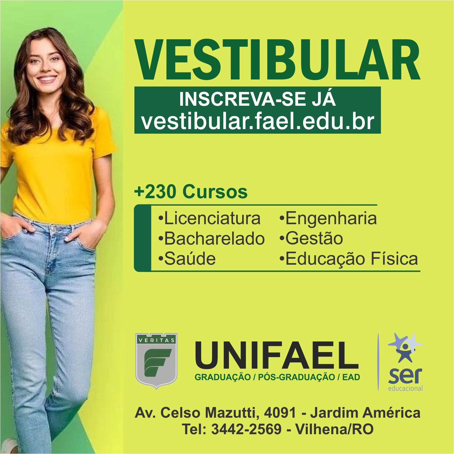 Não perca o VESTIBULAR UNIFAEL ! ( inscrições abertas – ligue: 69 3442–2569 ou vestibular.fael.edu.br )