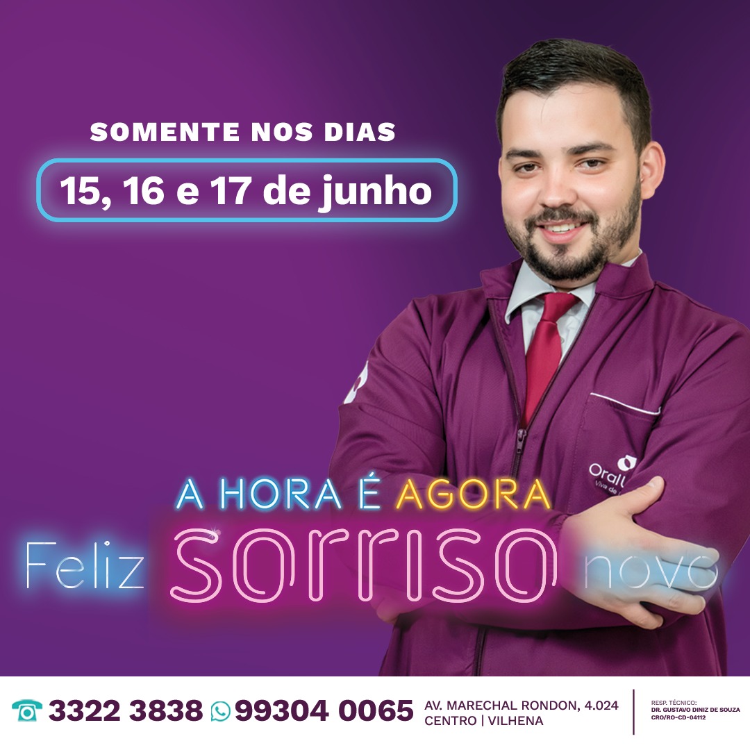 Para comemorar, na Oral Unic Vilhena acontece o A Hora é Agora. “A hora é agora de voltar a ter dentes fixos, com nossos implantes dentários, que são os melhores do mercado”, conta o Dr. Gustavo Diniz de Souza, diretor clínico e responsável técnico da Oral Unic Vilhena. “nessa oportunidade o paciente contará com toda a estrutura premium da Oral Unic e mais condições exclusivas”.