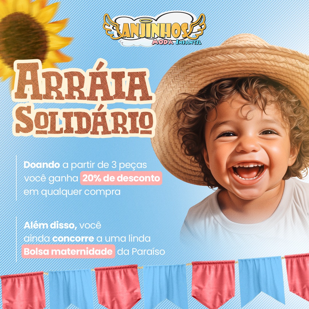 20% desc. + sorteio 01 BOLSA MATERNIDADE hoje no ARRAIÁ SOLIDÁRIO ANJINHOS MODA INFANTIL ! ( participe )
