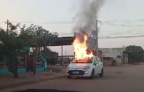 Um veículo Fiat Punto foi incendiado na manhã deste sábado (16), no bairro Bodanese, em Vilhena. O suspeito de atear fogo no carro teria tentado abri-lo, mas não conseguiu.