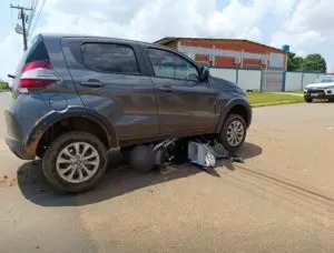 Biz vai parar embaixo de carro após acidente registrado na Melvin Jones em Vilhena