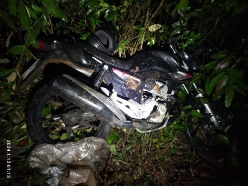 A moto estava cerca de 50 metros mata a dentro coberta por papelões, plásticos e vegetações. Ao lado do veículo estavam duas chaves de fenda, que provavelmente foram usadas para dar a  partida no momento do furto, pois a ignição estava danifica. Em seguida o veículo foi direcionado para a UNISP para realizar o registro da ocorrência policial.