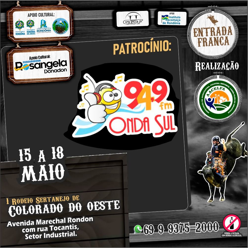 ONDA SUL FM 94,9 – Presente no 1° RODEIO SERTANEJO DE COLORADO DO OESTE !!! ( De 15/05 a 18/05 )
