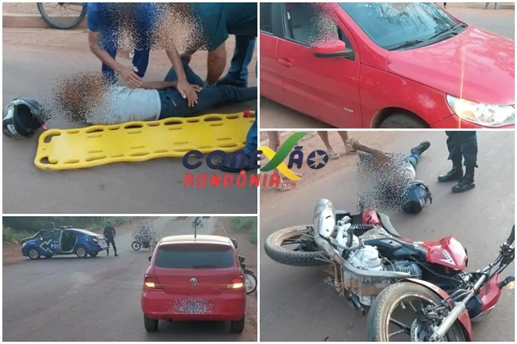 Motociclista fica gravemente ferido após colisão com carro em Cacoal