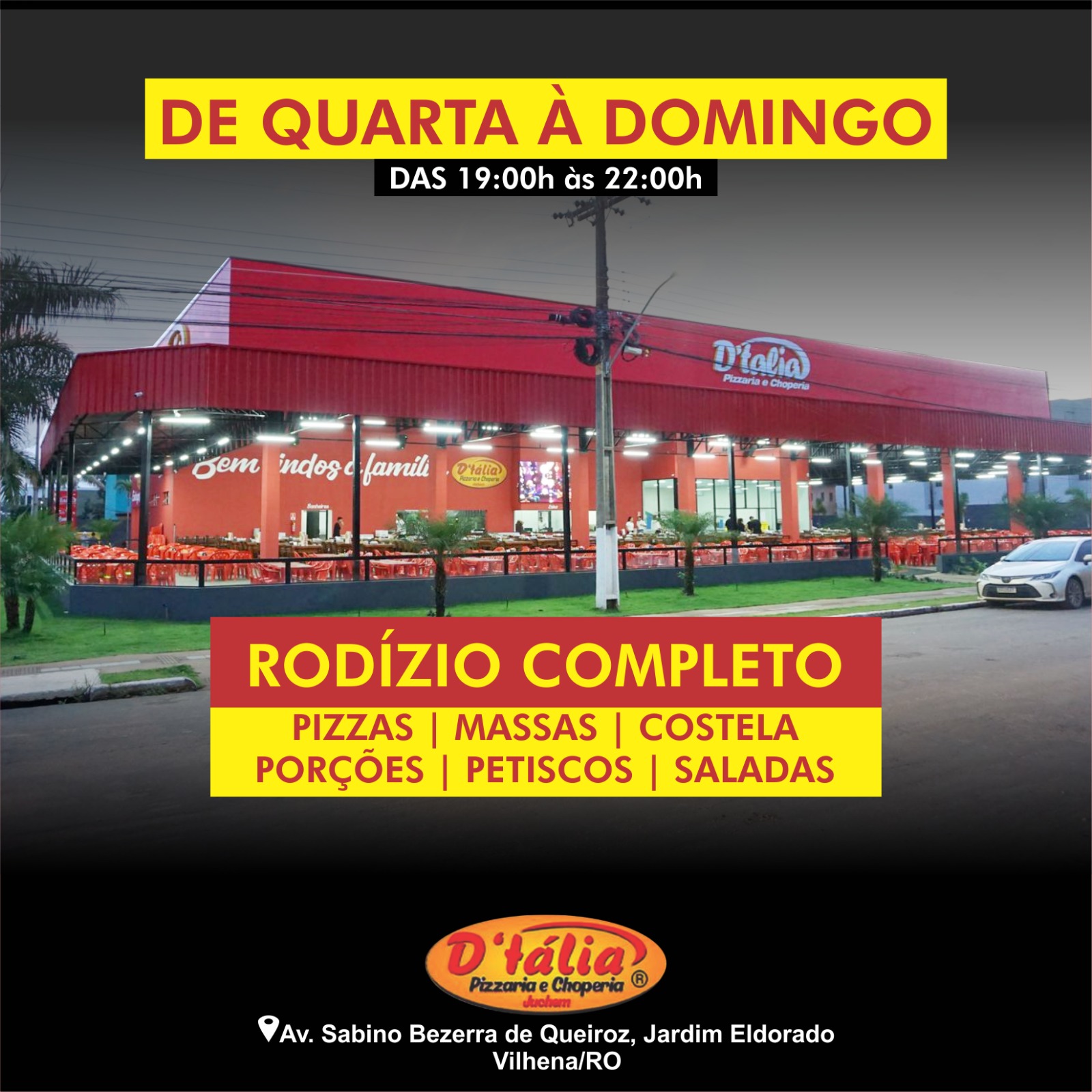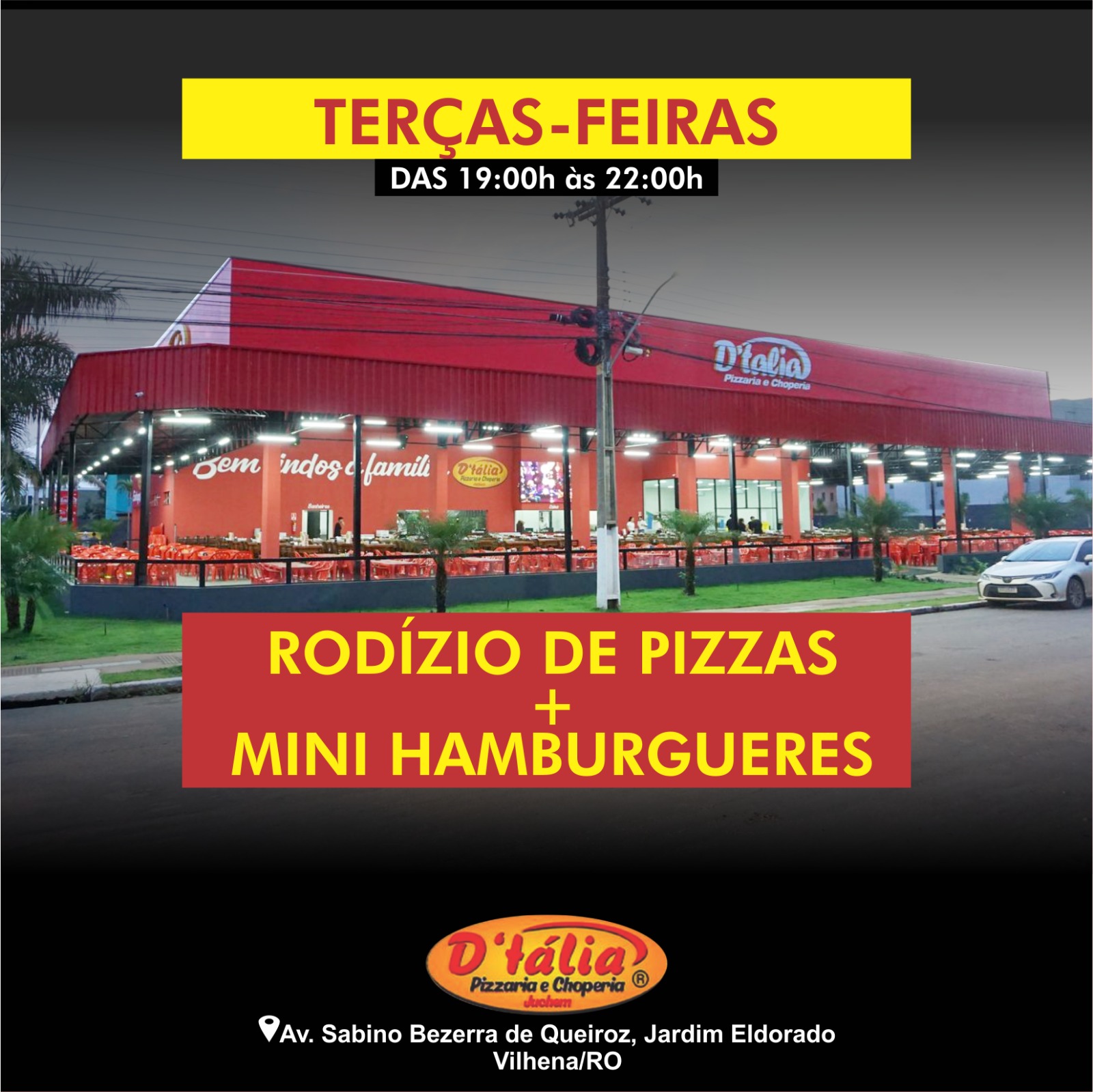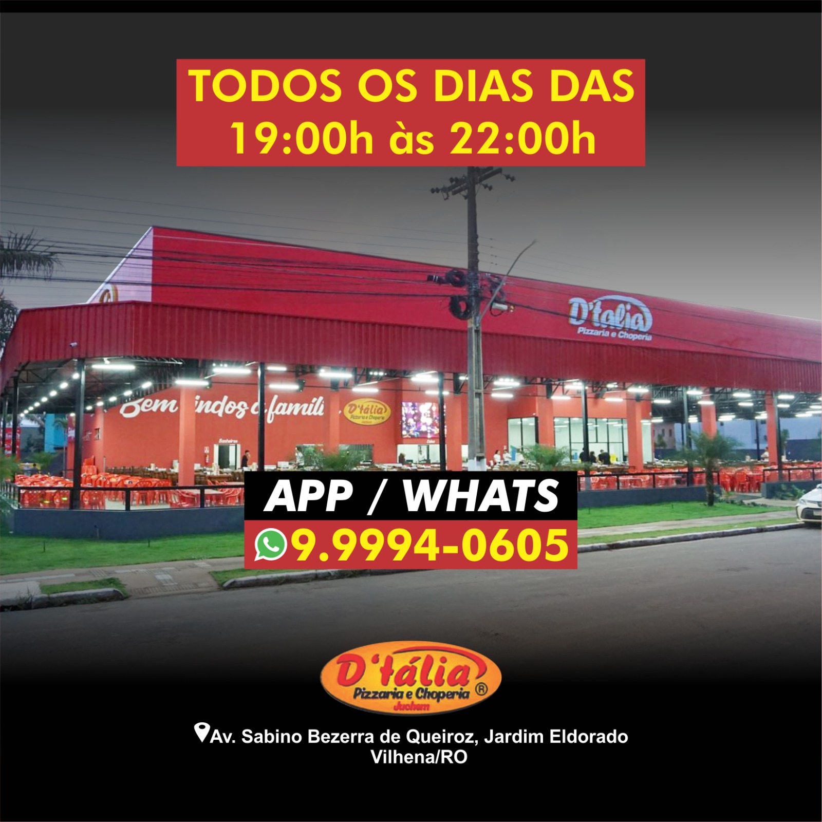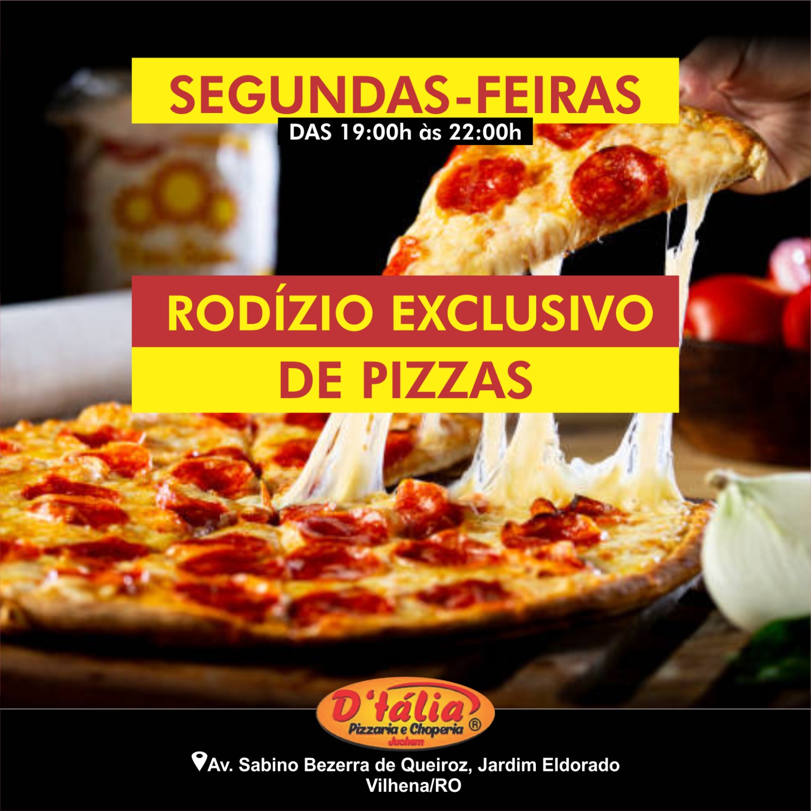 Bom d+ é na PIZZARIA E CHOPERIA D’TÁLIA ( Todos os dias das 19:00h às 22:00h )