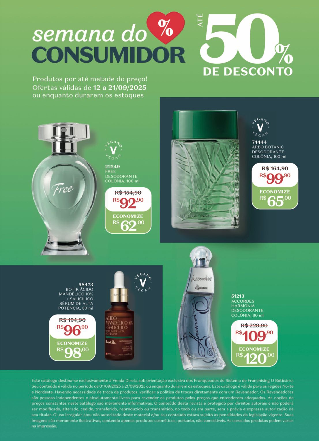 Até 50% desc. O BOTICÁRIO CENTRO – SEMANA DO CONSUMIDOR termina hoje, loja aberta com promoções até às 18:00h ! ( whats da loja: 9.8115–0547 / 3321–1149