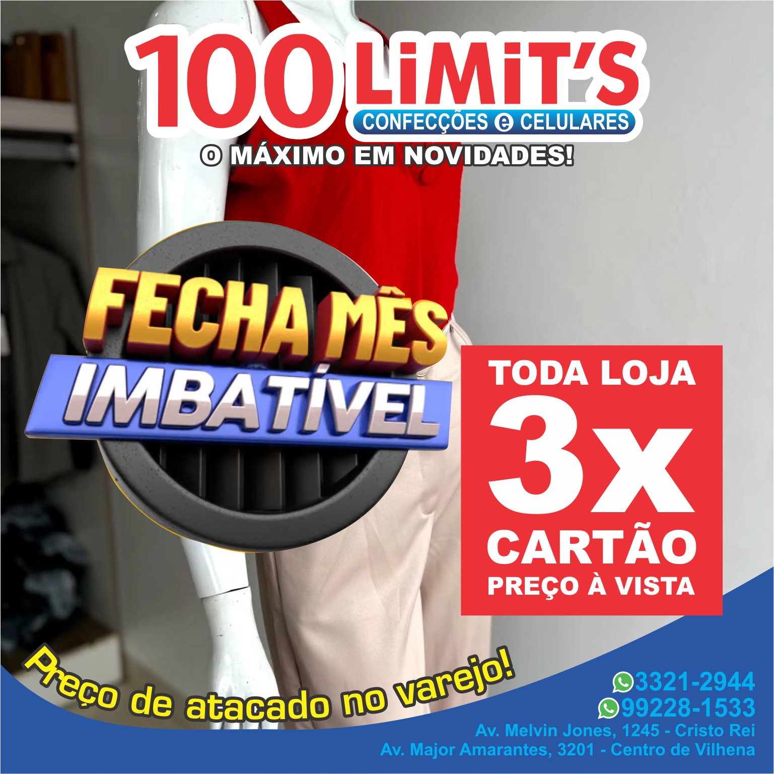 Na Promoção FECHA MÊS DE OFERTAS das LOJAS 100 LIMIT´S CONFECÇÕES e CELULARES, TODA LOJA PARCELADA NO CARTÃO em 3 VEZES NO PREÇO À VISTA!