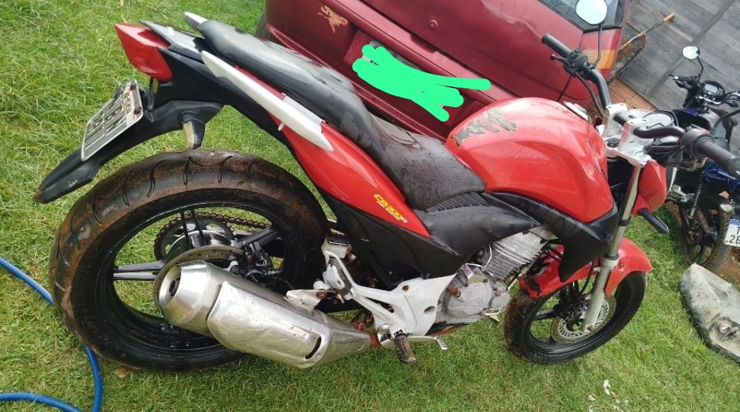 Minutos depois, a referida motocicleta foi levada por suspeitos que aparecem em imagens de câmeras de segurança instaladas no entorno.