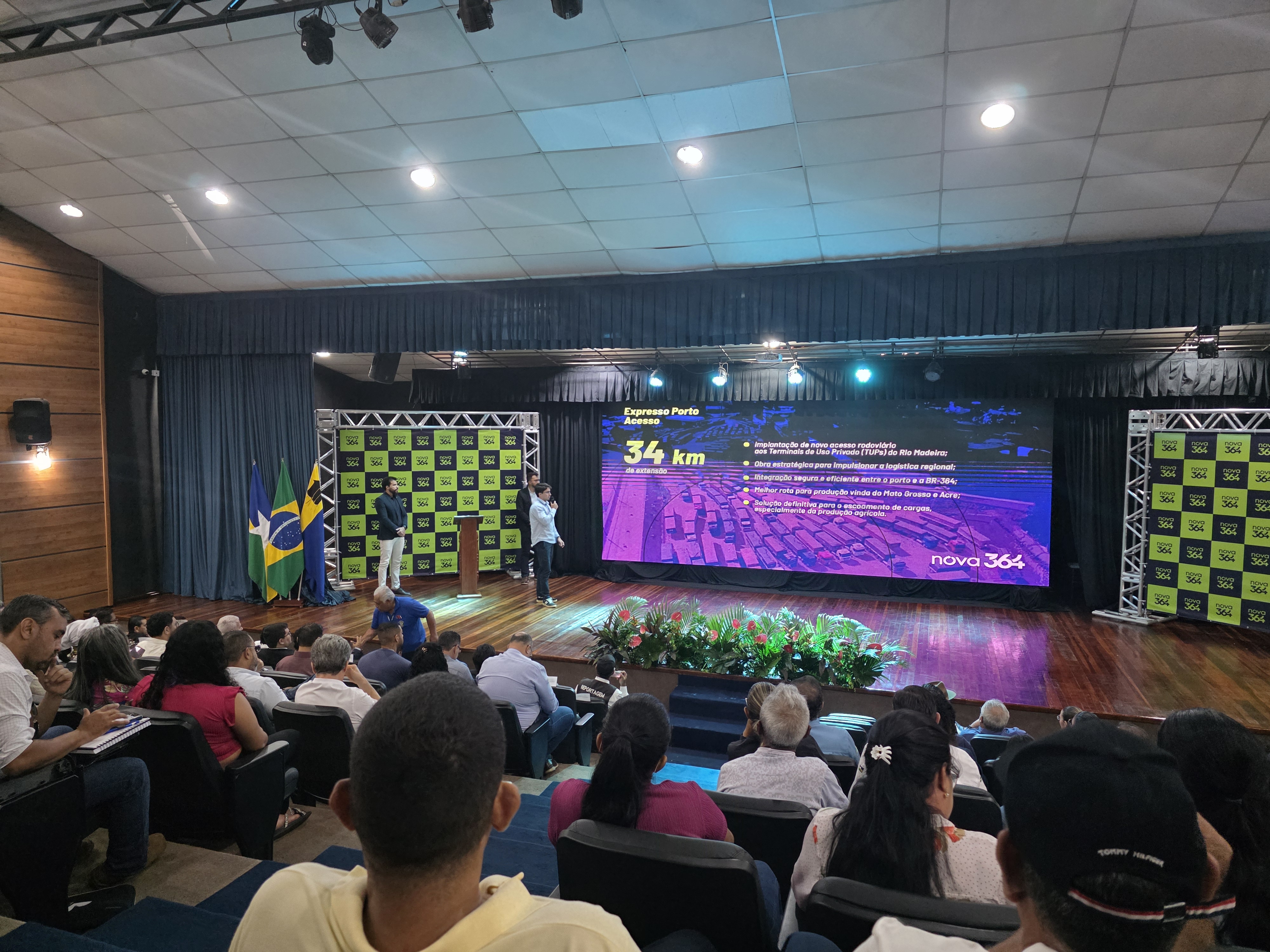 A Nova 364 Concessionária de Rodovia participou nesta quarta-feira, 12, de audiência pública promovida pela Secretaria Municipal de Meio Ambiente, em Porto Velho, para a apresentação do Expresso Porto e abertura à participação popular do projeto. Esta é a última etapa para obtenção da licença. A expectativa é de antecipação da obra ainda para este ano de 34 quilômetros de rodovia com o objetivo de melhorar a fluidez no escoamento de safras e reduzir o conflito entre o tráfego urbano e o de carga pesada na região de Porto Velho.