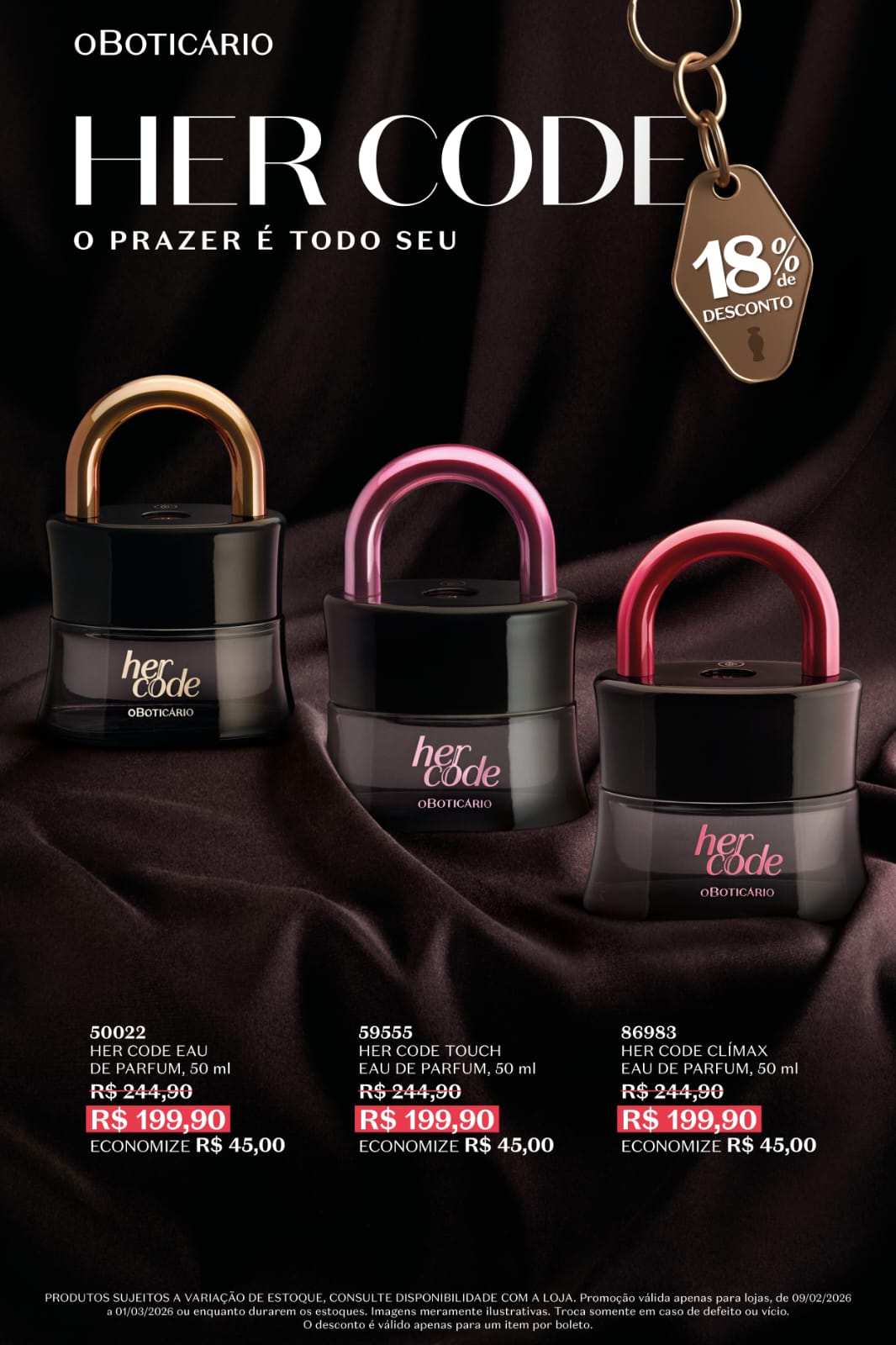 HER CODE com 18% desc. O BOTICÁRIO ! ( aproveite )