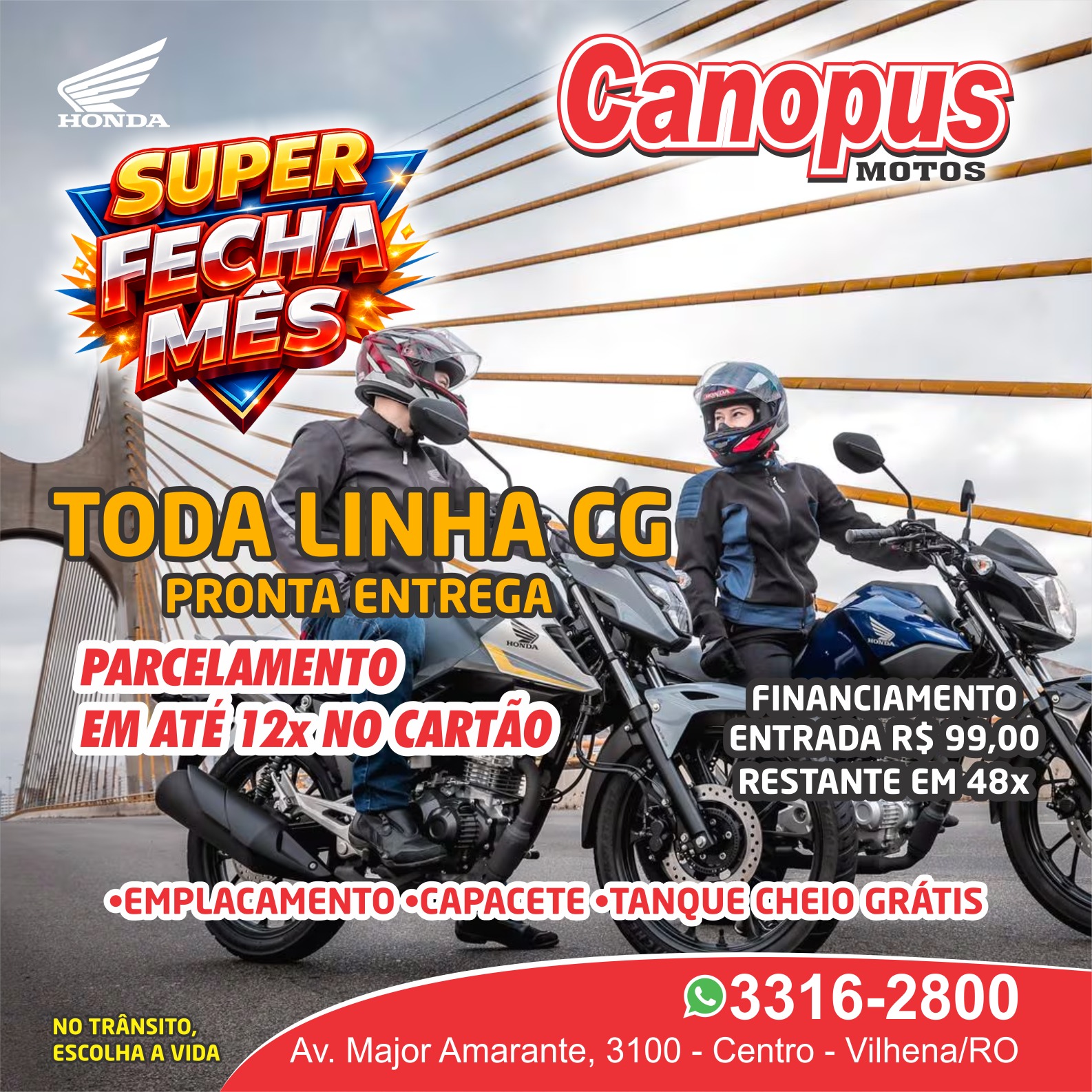 A Canopus está com todas as motos com preços, brindes e condições inacreditáveis!