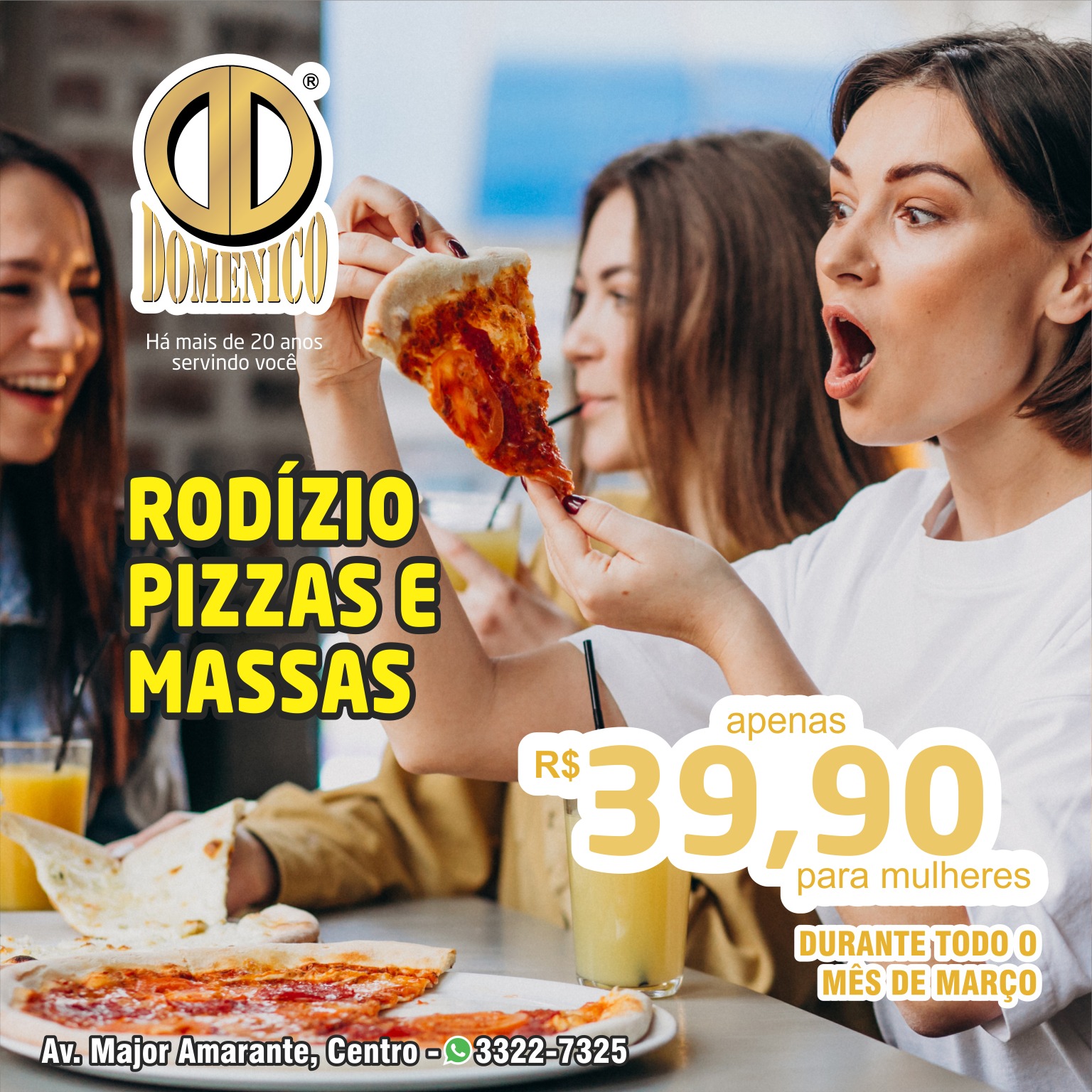 Março, mulheres pagam menos na PIZZARIA DOMÊNICO ! ( rodízio apenas R$ 39,90 )