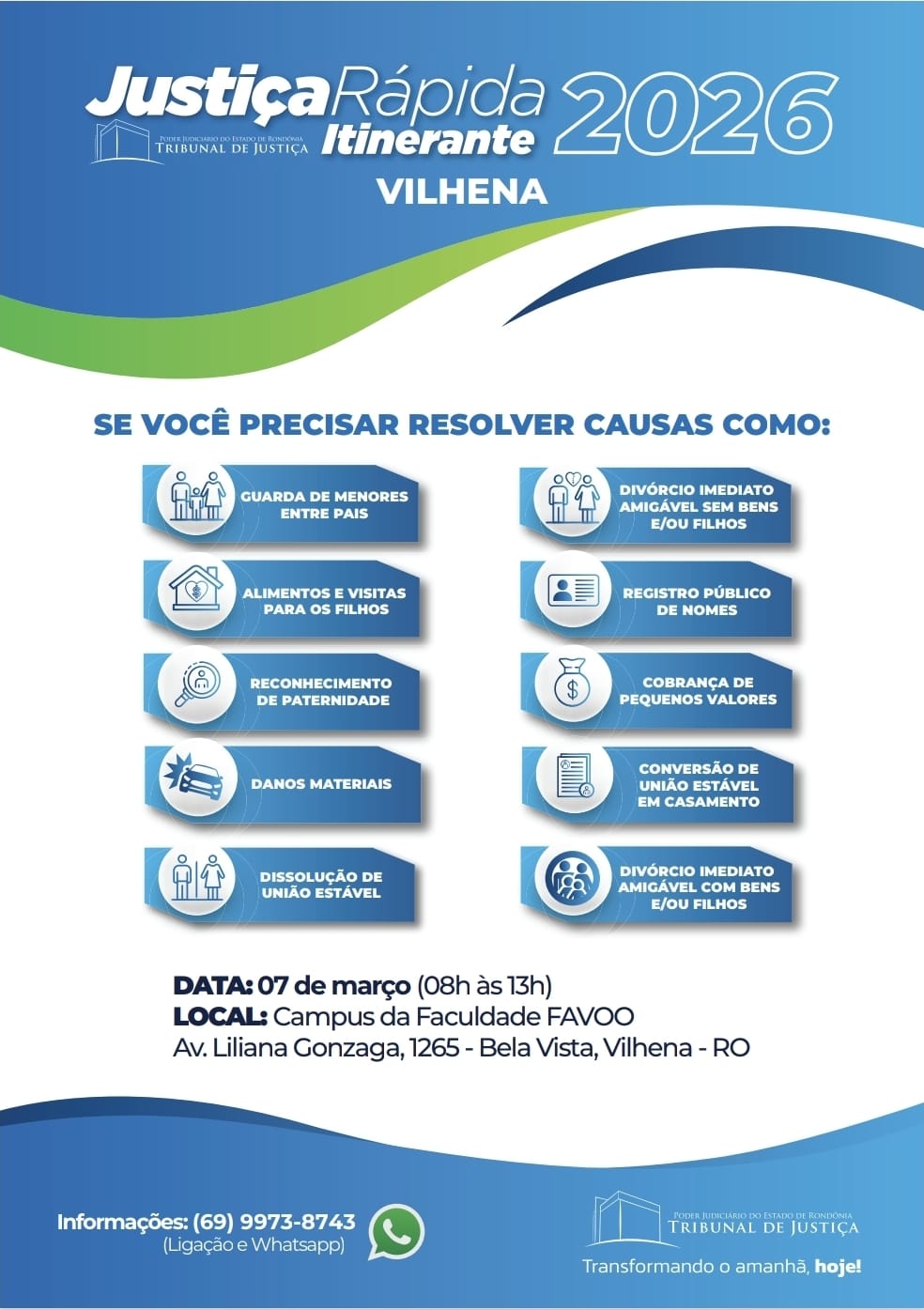 Datas e documentos necessários para a Justiça Rápida Itinerante em Vilhena (2026)