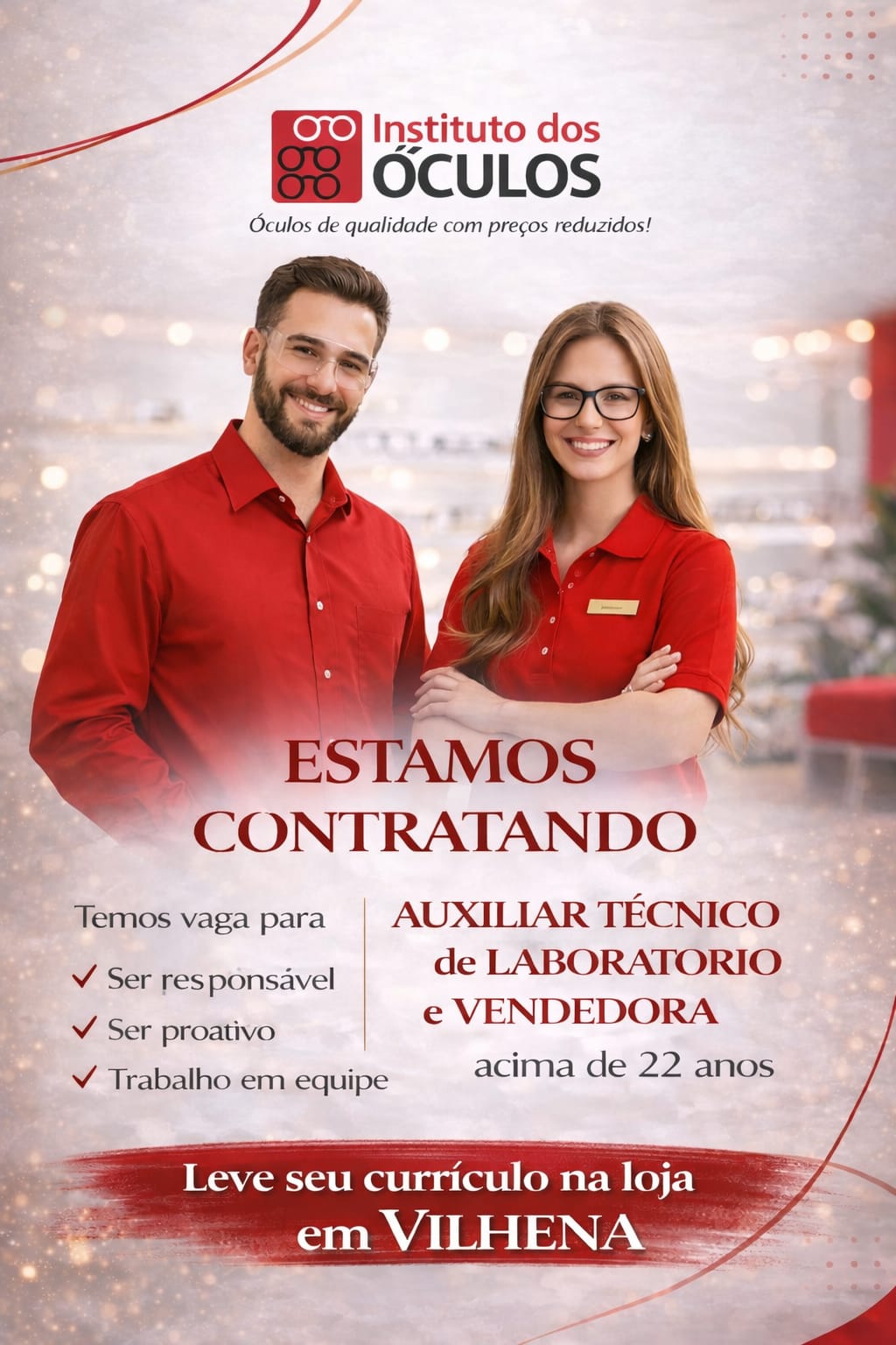 Instituto dos Óculos está contratando! ( venha trabalhar conosco )