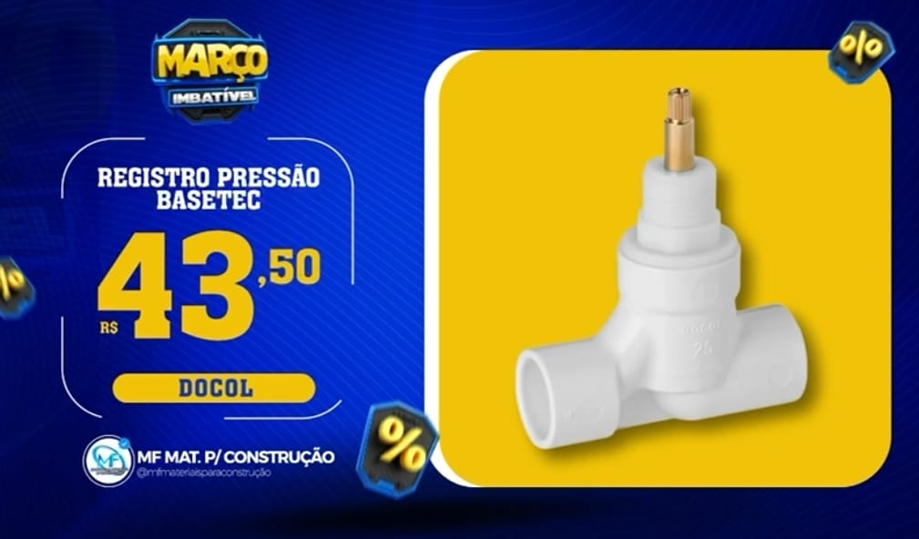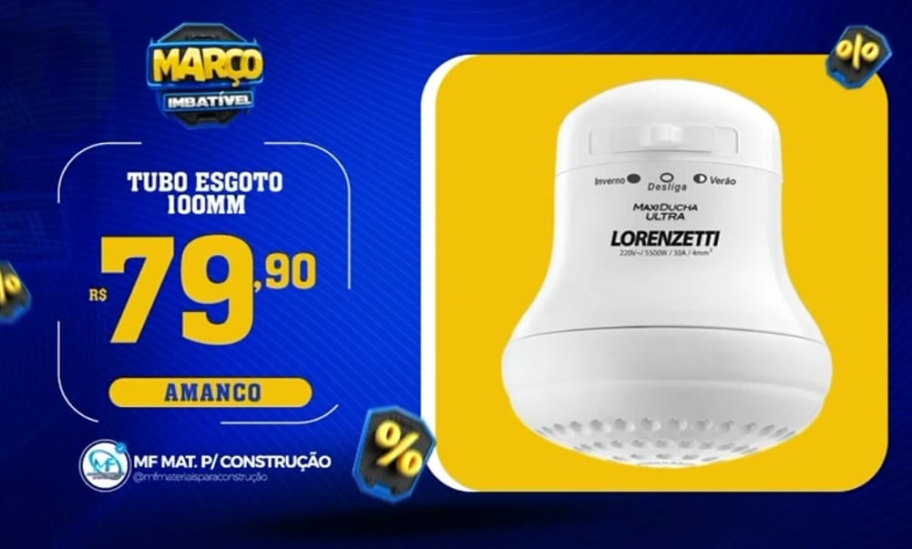 Promoção "MARÇO IMBATÍVEL" da MF MAT. P/ CONSTRUÇÃO ( Kit banheiro, massa corrida, espaçadores niveladores, registros, tubos esgoto 100mm, chuveiros e muito mais )