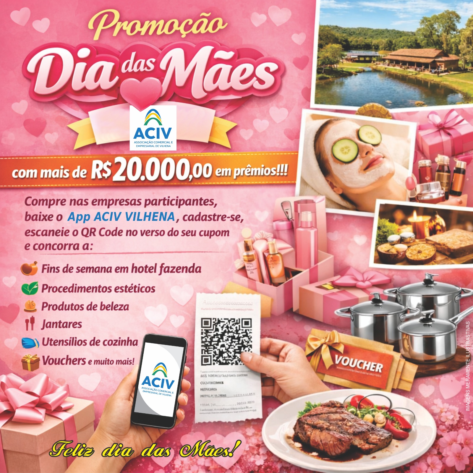 Promoção Dia das Mães ACIV com mais de R$ 20.000,00 reais em prêmios!!!