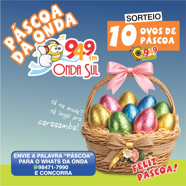 Está chegando o GRANDE SORTEIO DE PÁSCOA da ONDA SUL FM 94,9 !!! ( saiba aqui como participar )