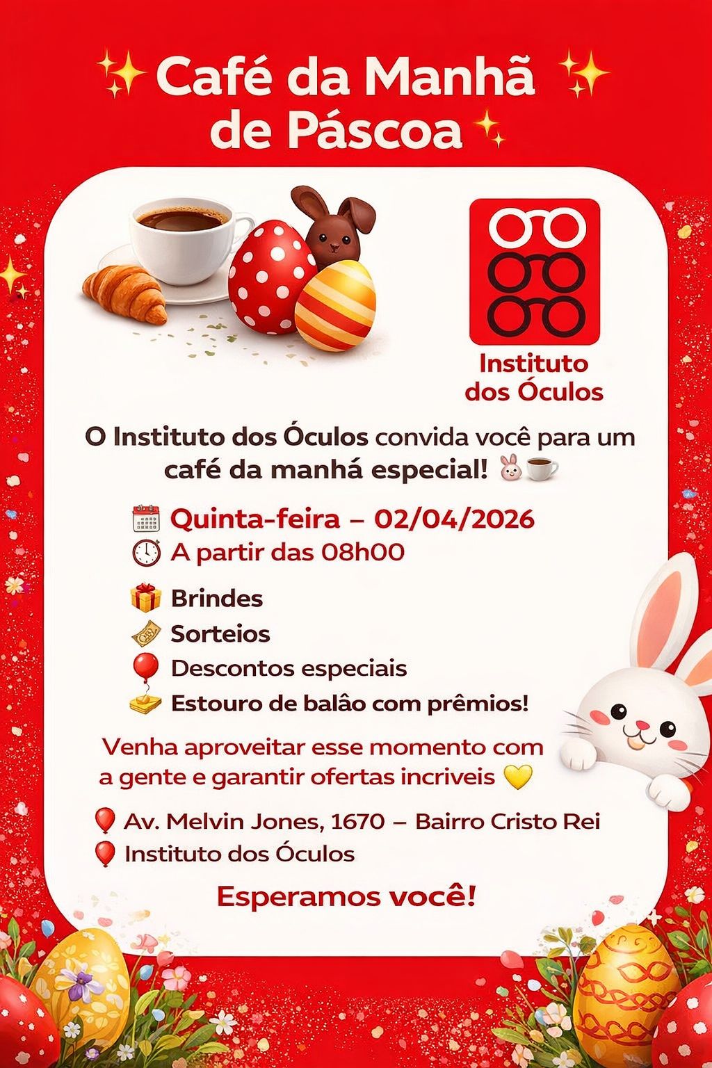 O Instituto dos Óculos da Av. Melvin Jones, convida você para um café da manhã especial!