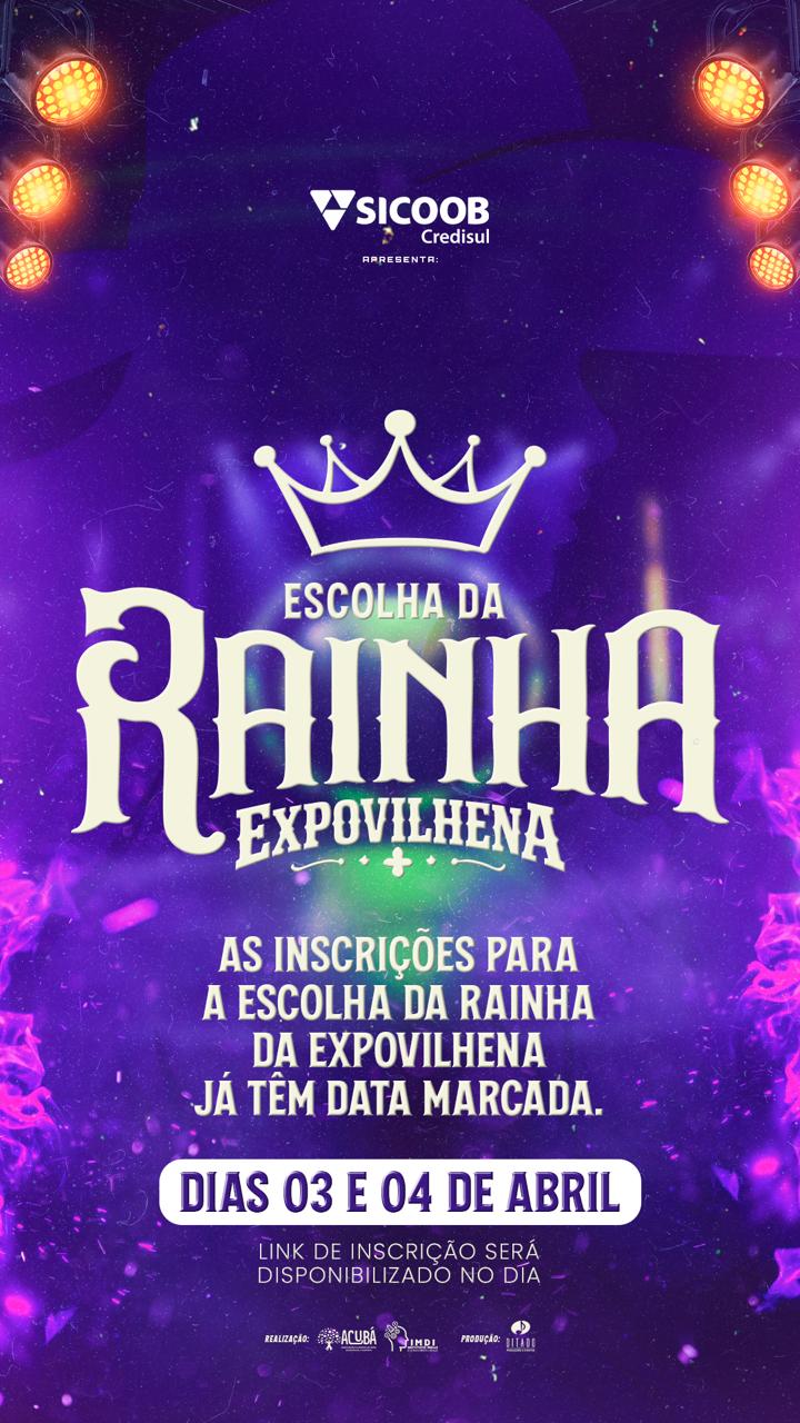 > Atenção para as inscrições da Escolha da "Rainha da EXPOVILHENA 2026" ( INSCRIÇÕES DIAS 03 e 04/04 )