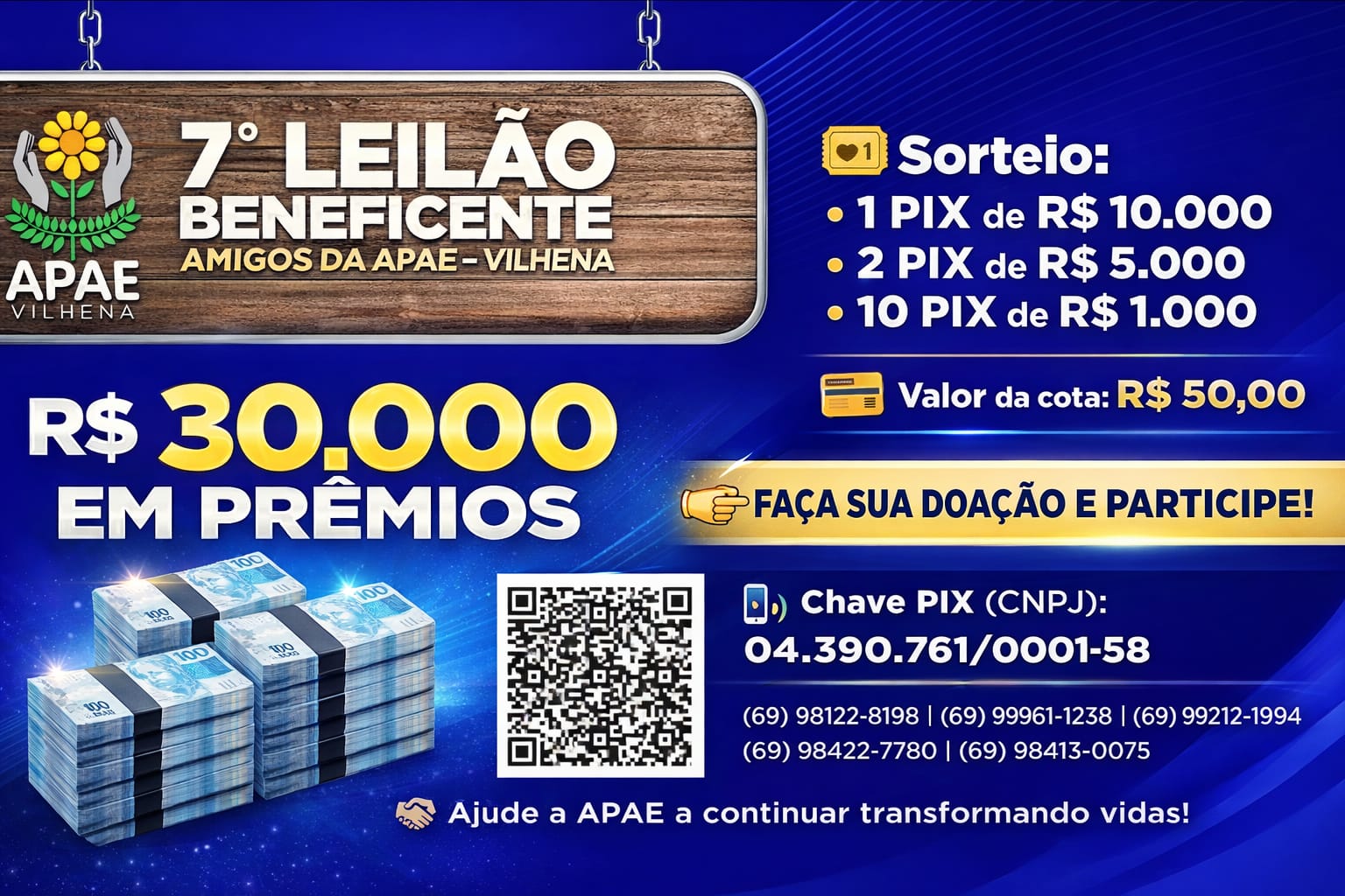 7º Leilão Beneficente da APAE Vilhena vai sortear R$ 30 mil em prêmios ( Campanha solidária )